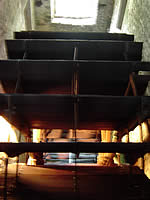 In 1850 the modernisation of the milling industry necessitated the reconstruction of the mill on four levels with a mechanism known as "english" and which still exists. At this time the mill was considered a factory as apart from milling flour it also pumped water for the Chateau gardens and was later equipped with a dynamo to produce electricity and a hydraulicaly driven pully was installed on the outside which could be harnessed to machines on the exterior. At the same period, on the other side of the river, a threshing machine for clover was installed This was the only one on the River Erve. The mill ceased activity in 1958 and since then has been conserved and patiently restored.